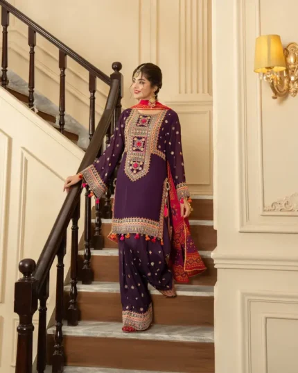 New Arrival Dhanak Heavy Embroidery Winter 3PC Purple