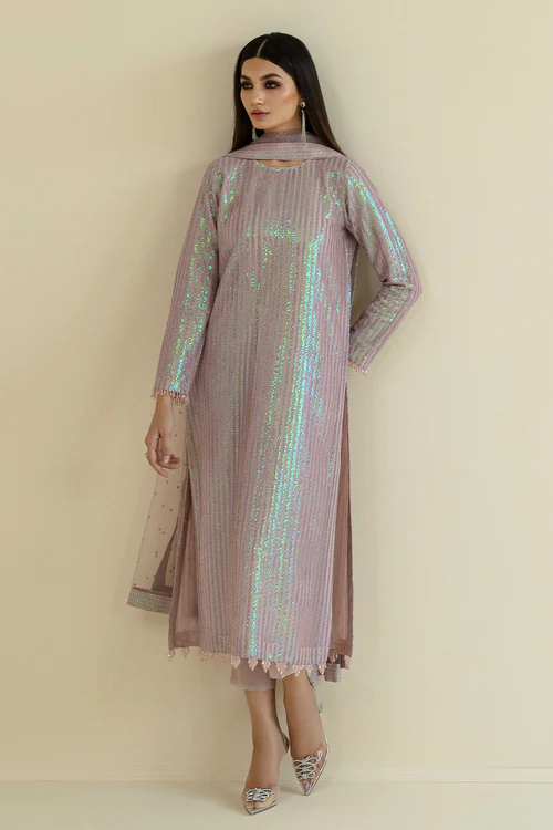 Luxury Heavy Sequence Embroidery 3PC Baby Pink