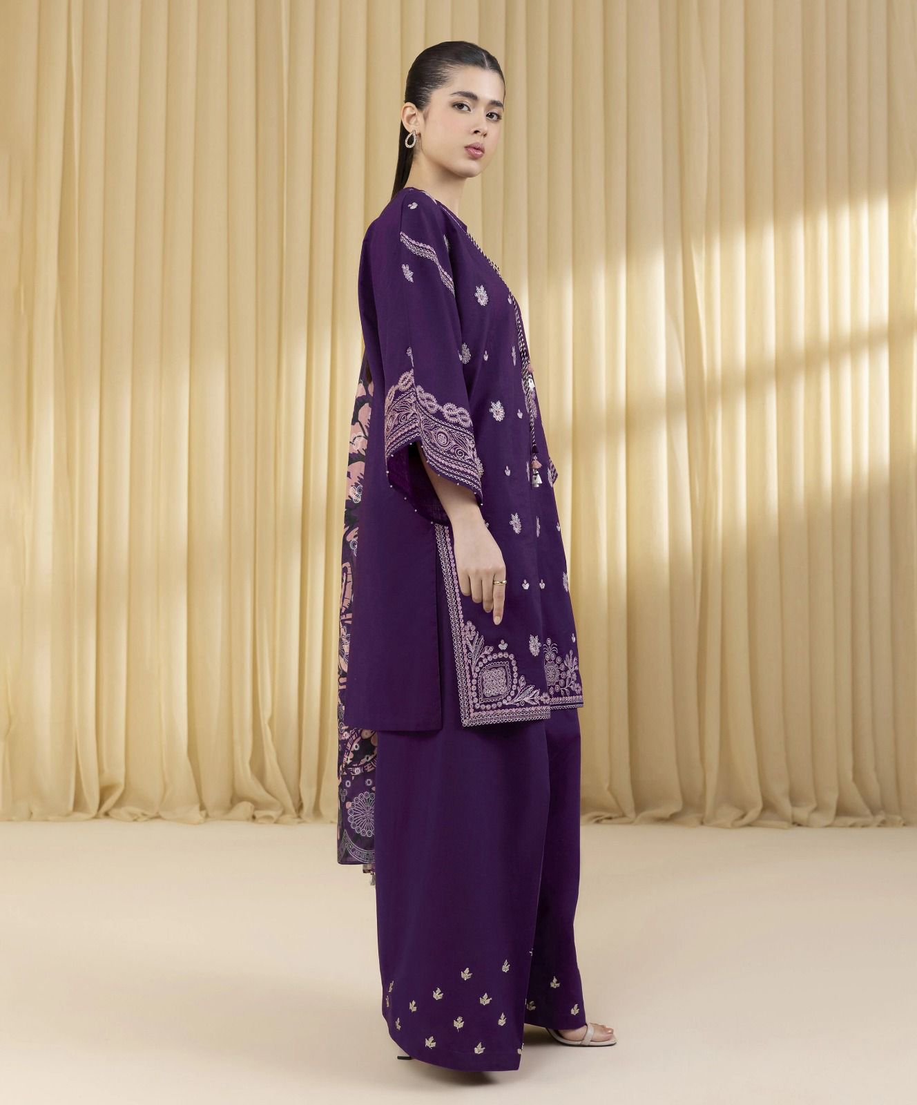 New Arrival Dhanak Heavy Embroidery Winter 3PC Purple